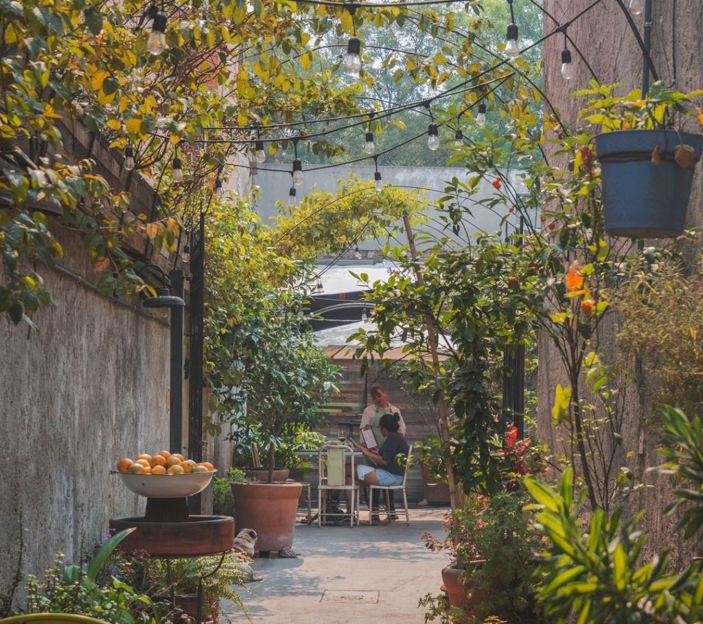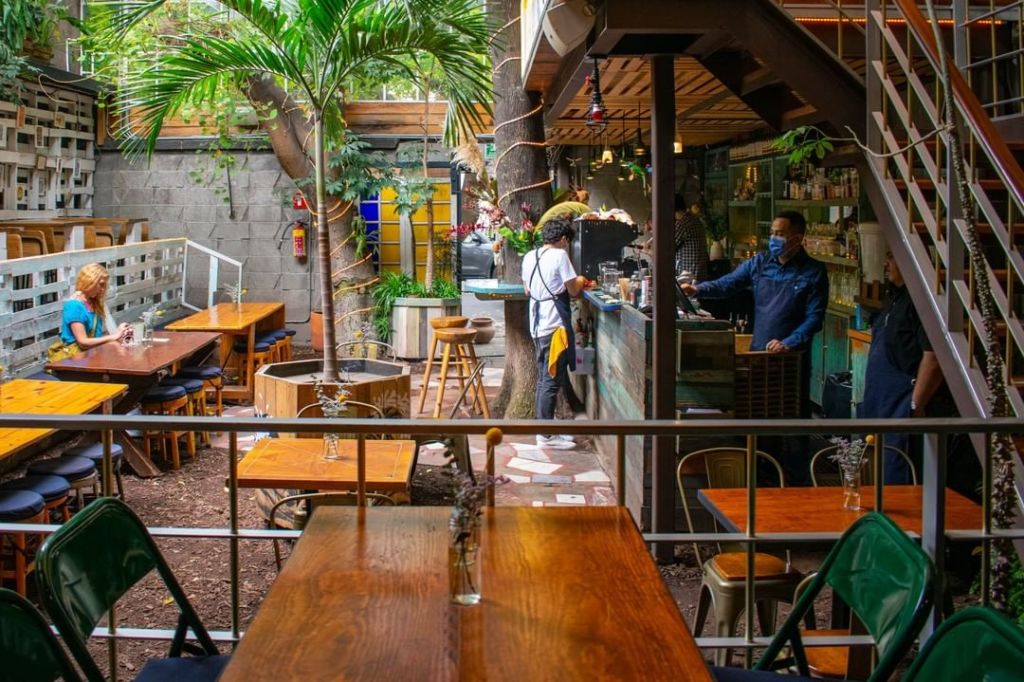Café Comunidad cuenta con uno de los jardines más bonitos de la Condesa, posicionándose como una de las terrazas ‘buenas, bonitas y baratas‘ en la CDMX donde hacer home-office o disfrutar una comida al aire libre. Su menú cuenta con opciones bastante saludables, así como alimentos vegetarianos y veganos que se adecúan a cualquier régimen alimenticio; recomendamos probar sus Chilakiles Comunidad –servidos en salsa verde de la casa con cebolla encurtida, frijoles, tofu orgánico asado y setas– o su Hamburguesa de Betabel –con champiñones y frijoles, acompañada de camotes con paprika o papas al romero–.