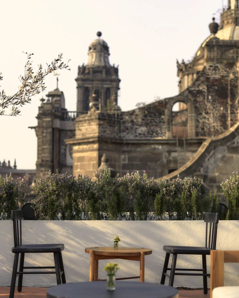 Círculo Mexicano es uno de los hoteles más especiales del Centro Histórico de la CDMX, conocido no solo por sus preciosas habitaciones de detalles artesanales, sino también por contar con una terraza de propuestas diversas. Esta cuenta con una terraza al Zócalo con vista privilegiada hacia la Catedral Metropolitana, el Palacio Nacional y el Templo Mayor, así como una cocina cambiante y de sabores de temporada, donde disfrutar todo tipo de vinos orgánicos, mezcales tradicionales y botanas para compartir.