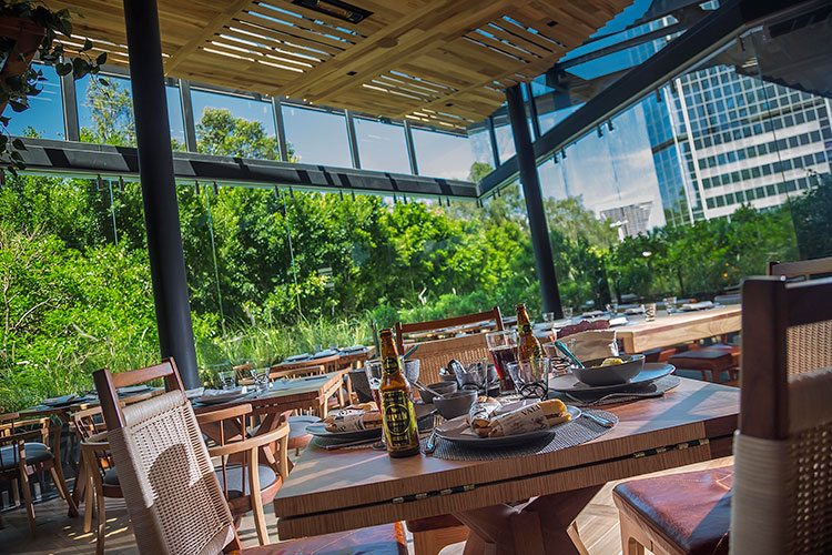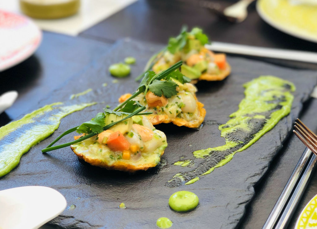 Desde el momento en el que llegas comienzas a maravillarte con su ambiente de vanguardia en donde la calidez, el confort y la atención a los detalles juegan un papel fundamental. Su hermosa mezcla de naturaleza con diseño y arquitectura sencillamente invitan a quedarte, en donde hermosos ventanales y una terraza divina contrastan con mesas de madera, sillas acolchadas y bellos sillones con cojines, todo con el objetivo de crear un ambiente ideal para pasar largas horas de charla con una oferta gastronómica “mexico-peruana”que te encantará. No olvides probar su rollo Nikkei, sus tostones –preparados con plátano macho frito– y su ceviche mixto de huachinango con leche de tigre. Acompaña tus platillos con una de las etiquetas que tienen disponibles en su hermosa cava de vinos.