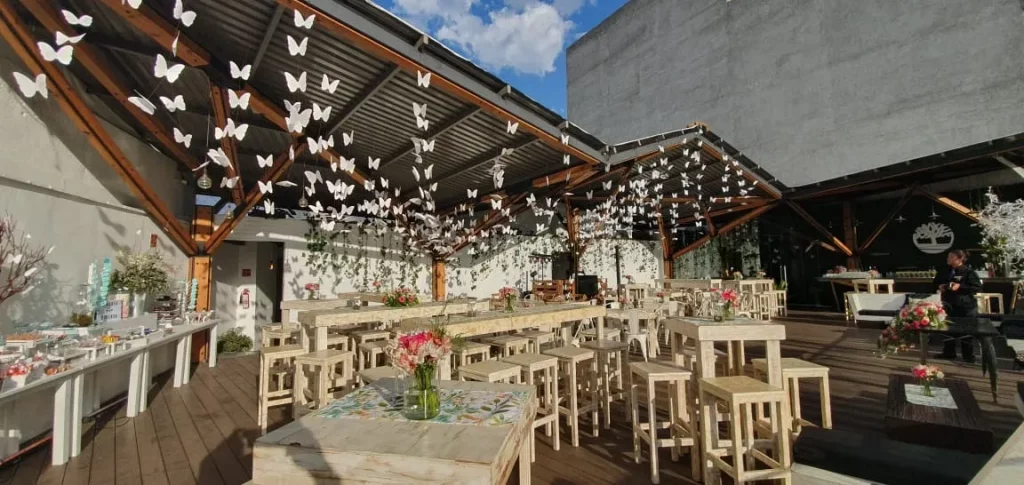 En caso de buscar un sitio versátil y de diseño sublime, Brocante será una de las mejores opciones en cuanto a terrazas para eventos en la CDMX. Su espacio cuenta con área techada y exterior, esto para prevenir cualquier inconveniente climático y asegurar la mejor experiencia posible durante el evento; lo mejor de todo es que ahí mismo podrás cotizar servicios de bebidas, barras de café, bocadillos, mesas saladas y dulces, coffee breaks y más.
