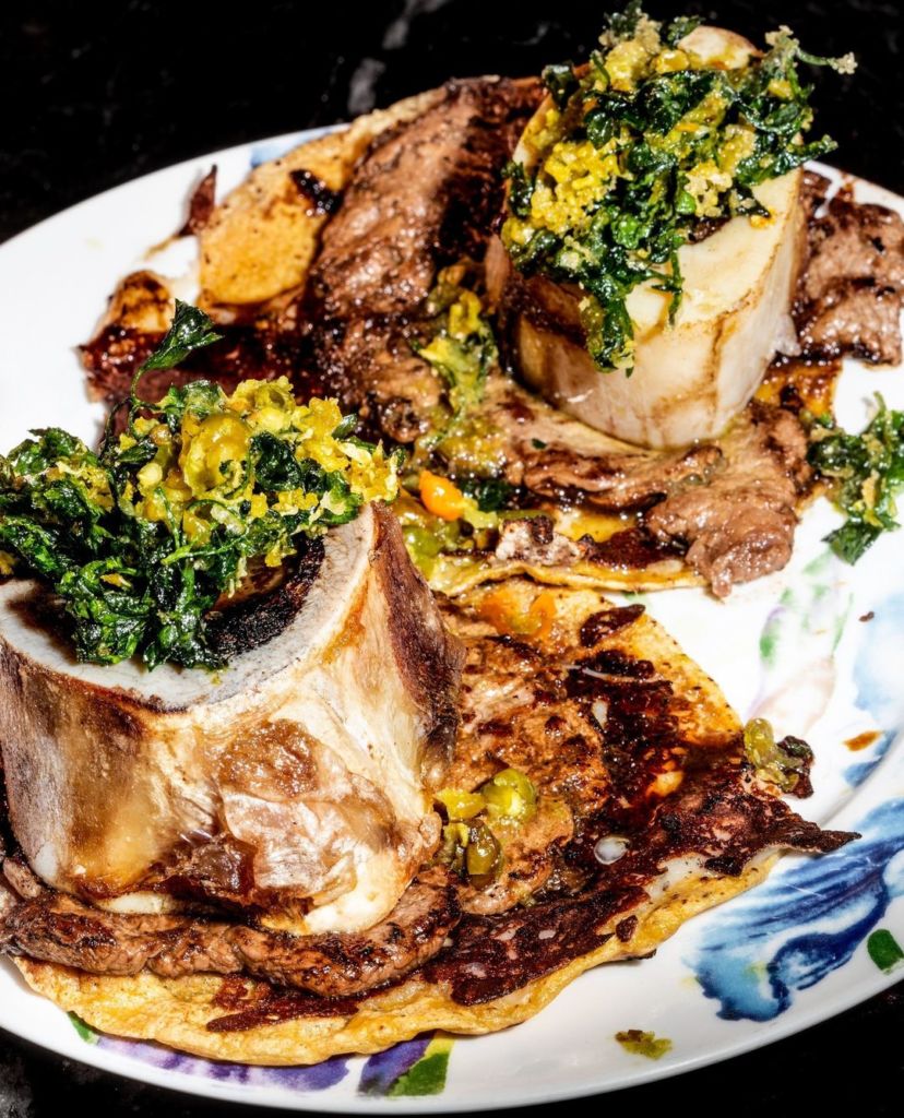 Si bien el menú de Testarossa comparte la calidad de producto y excelencia técnica de su restaurante, se permite ser un poco más rebelde y reducido. En la sección de alimentos encontrarás tacos y carnes, los primeros de filete con tuétano o en trompos especiales – cerdo, res y pollo al carbón -, mientras que las carnes en preparaciones más casuales y perfectas para compartir – Reuben Sandwich, nuggets con caviar, Cheesy Burger -.