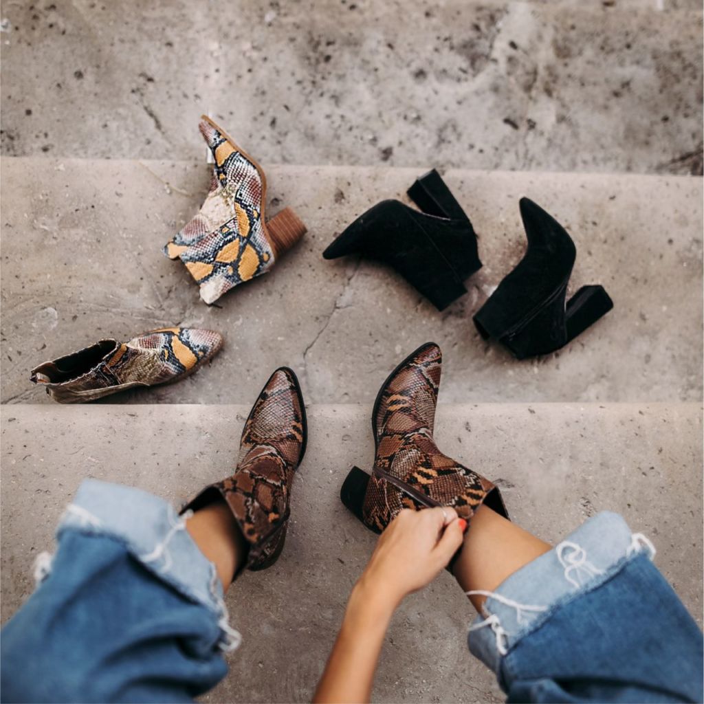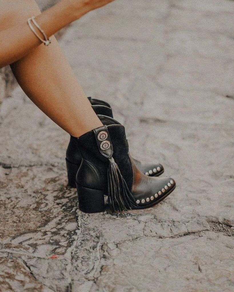 Para las chicas con estilo más conservador. o que apenas están animando a usar las cowboy boots, esta marca tiene unas botas de gamuza color arena ideales para crecer su look, pero sin añadir tanto detalle. También encontrarás cowboy boots blancas de corte alto, y otras negras con detalles que asemejan a la piel de víbora. Esta línea es muy bonita y se enfoca en diseños clásicos para un estilo western relajado y minimalista que podrás combinar con vestidos, pantalones, shorts, sacos y más.