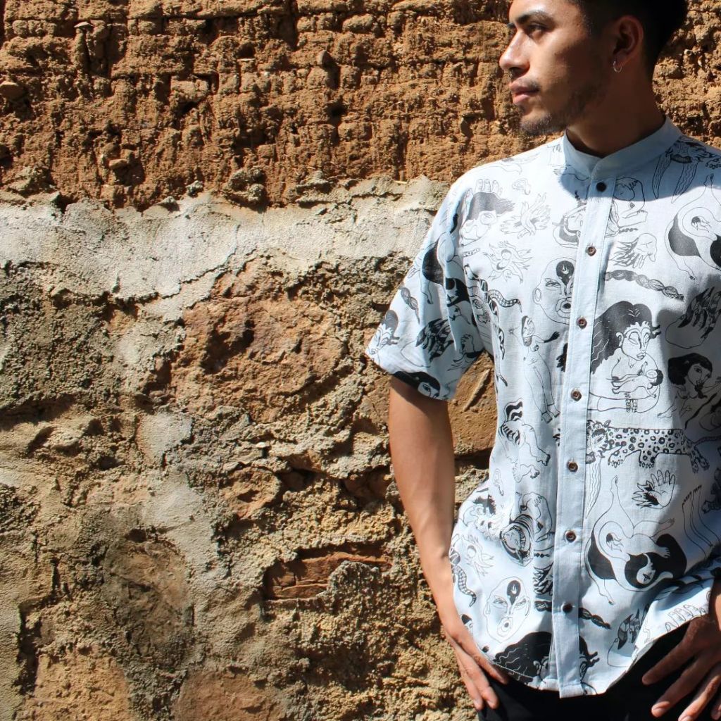 Las prendas de Hombre Necio son lo más cercano a traer puesto un lienzo plagado de historias. Desde 2013, este proyecto creado por la artista Alejandra Torres se ha dedicado a promover la gráfica nacional en la industria de la moda a partir de procesos de ilustración, grabado y estampación textil. Gracias a que los materiales son 100% naturales —trabaja sobre todo con lino y algodón—, las prendas son frescas, durables, originales, y en muchos casos, únicas.
