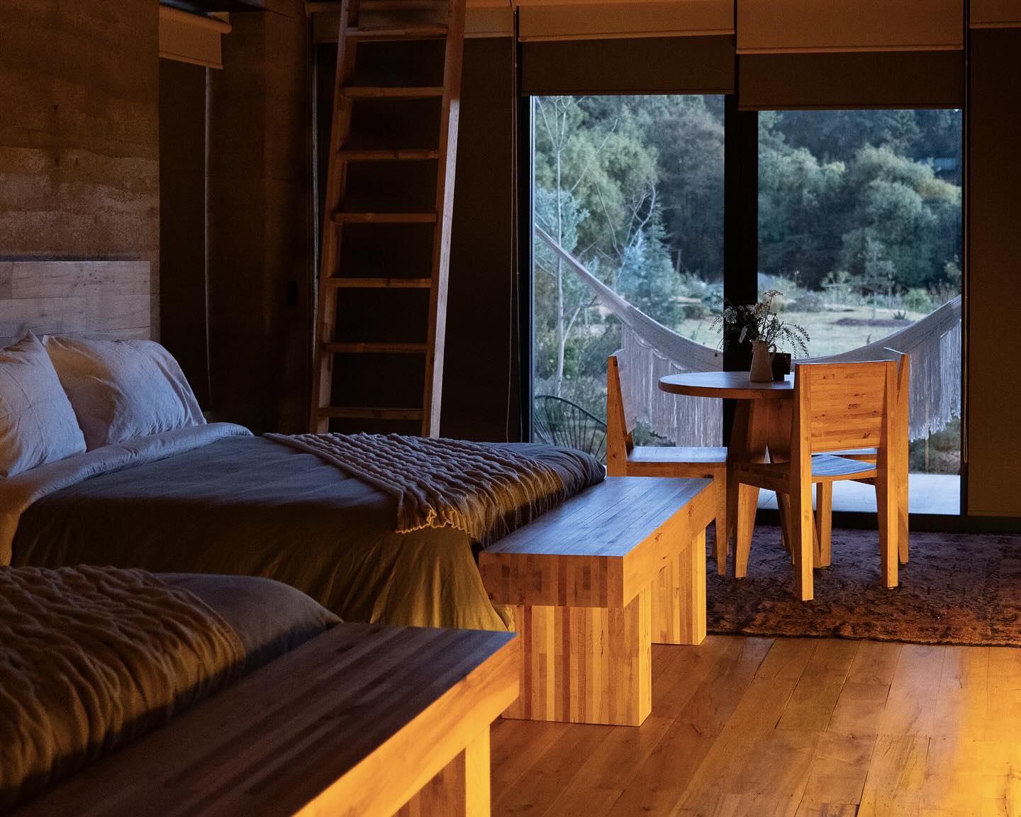 Si deseas pasar más tiempo en este paraíso, ofrecen distintas opciones de hospedaje en sus preciosas cabañas en medio del bosque. Ya sea que optes por un dormitorio con baño compartido, por una cabaña individual (ideal para parejas) o por una cabaña más amplia (para grupos de hasta seis personas). Cada cabaña cuenta con un baño propio, una chimenea de leña, un escritorio, áreas comunes y una terraza desde cuya hamaca podrás disfrutar de las vistas.