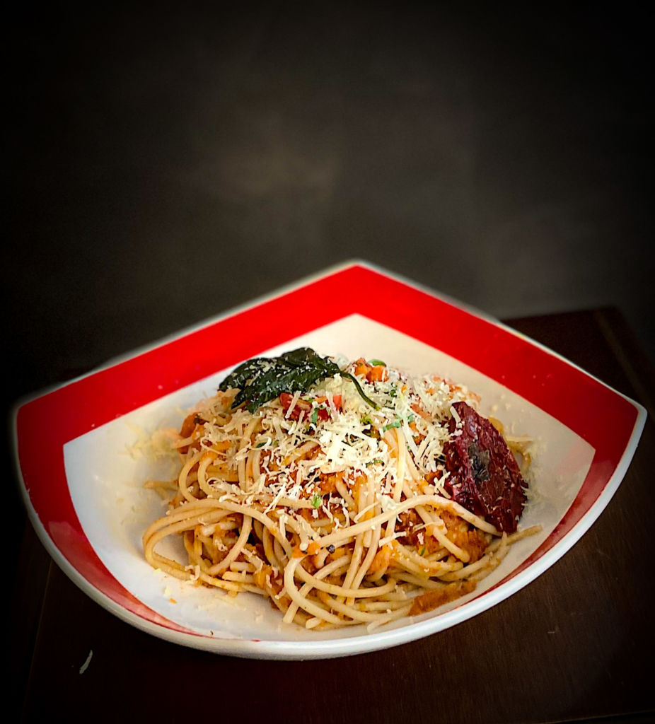 También puedes optar por una pasta, por ejemplo, un spaghetti con salsa pomodoro o un bucattini cremoso acompañado de camarones al aceite de ajo rostizado para acompañar los cortes o como plato fuerte.