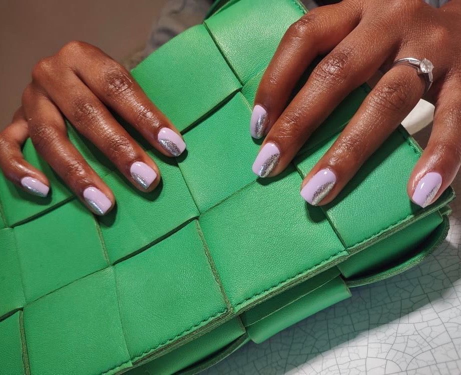 Nunca puedes equivocarte con un buen lila o púrpura pastel para la primavera. Si deseas cambiarlo un poco, intenta usarlo para crear un diseño de punta francesa. Tu mani se verá muy cute y gritará que está ‘floreciendo como las jacarandas en esta temporada’.