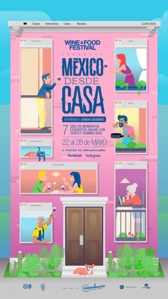 Te invitamos a disfrutar de un festival gastronómico 100% digital y gratuito desde la comodidad de tu sillón, mientras ayudas a una buena causa. En este espacio, personajes de la alta cocina mexicana brindarán demostraciones, además de compartir tips y técnicas muy útiles para mejorar tus platillos. El Wine & Food Festival: México Desde Casa, se llevará a cabo del 22 al 28 de mayo, y podrás verlo a través de sus cuentas en Facebook e Instagram; y se quedarán ahí para siempre, para que puedas revivirlo cuantas veces quieras, y lo puedas compartir a tus amigos en las redes sociales.