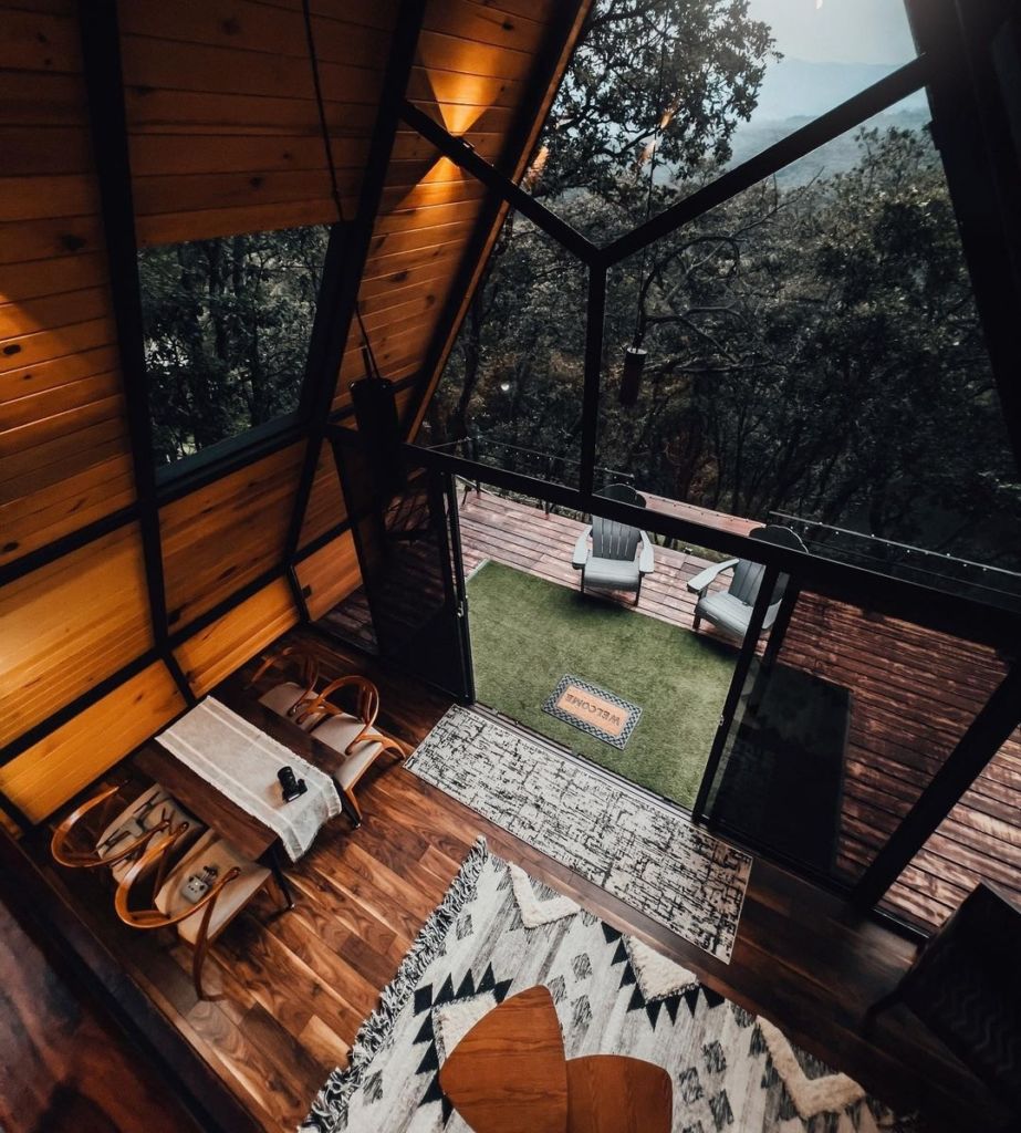 Cada una de las cabañas de Woodland Cabins, cuenta con cama king Size, sala, comedor, cocineta con todo lo necesario para que cocines en la cabaña y una increíble terraza perfecta para una foto perfecta para el feed. Si quieres algo más romántico, te recomendamos reservar en su restaurante, el cual por las noches se alumbra con focos de luz tenue, y cuenta con un menú mediterraneo, perfecto para una cita.