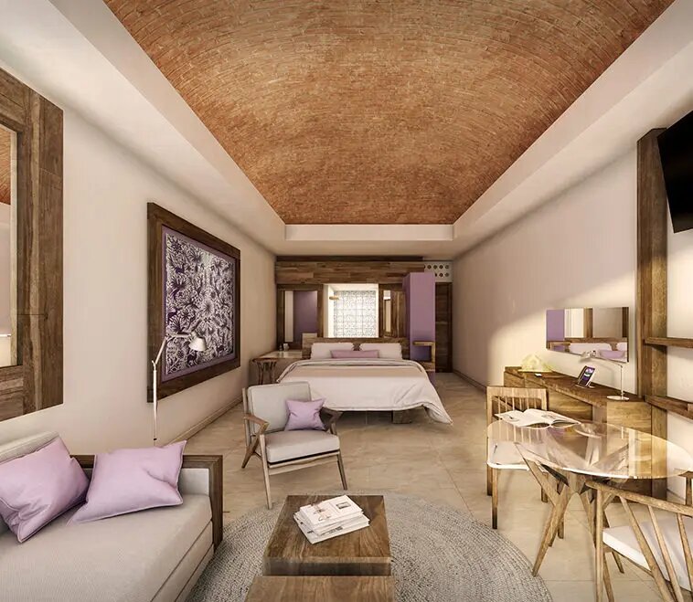El diseño del Xcaret Arte responde a una arquitectura eco-integradora, que entremezcla sus instalaciones con el entorno natural que les rodea. Sus suites privilegian la decoración mexicana con sus amenidades orgánicas, decoradas cuidadosamente para ofrecerte un hermoso espacio artesanal, que hará te enamores de su contemporaneidad y armonía. Puedes optar por hospedarte rodeado del verde intenso de la selva maya, al lado de un pacífico río de aguas dulces, o justo frente a la magnificencia del Mar Caribe. Cualquiera de las opciones será un agradable refugio vacacional.