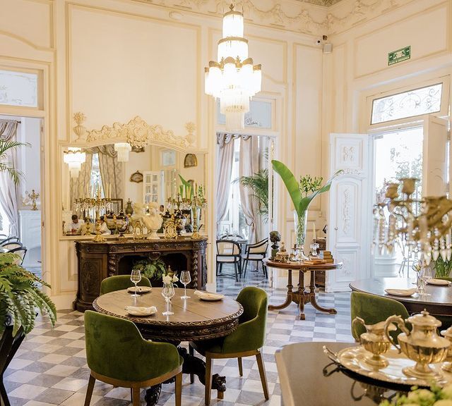 Hablemos primero del icónico inmueble que aloja Yerba Santa: el Minaret. Su nombre se deriva del alto mirador con influencia morisca desde el cual se pueden apreciar vistas privilegiadas de Paseo Montejo. La casa fue construida para el Dr. Álvaro Medina y su familia en 1908, donde se alojaban en sus visitas a la ciudad. Aunque no se conserva el mobiliario original, está amueblada con sillones, espejos, vitrinas y recámaras de la época. Además del restaurante, cuenta con terrazas, jardines y salones interiores que se pueden visitar e incluso rentar para eventos.