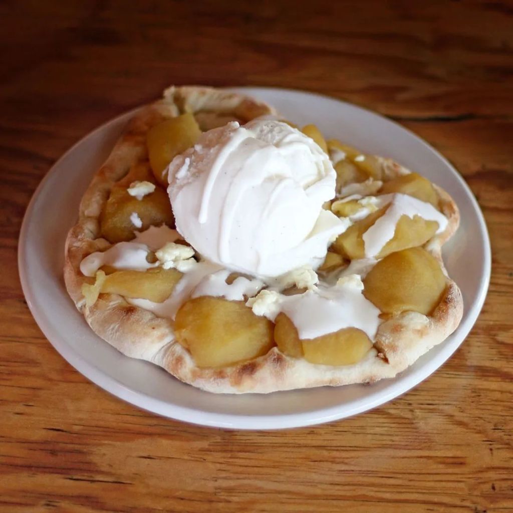 Como plato fuerte, las más populares son probablemente las pizzas, estas son hechas al horno con una base de salsa de jitomate y una mezcla de quesos muy especial: Oaxaca, mozzarella y provolone. Aunque todas sus combinaciones son una apuesta segura, nuestra recomendación es la de queso azul y manzana con mermelada de chile güero (si disfrutas de esas combinaciones entre dulce y salado) y la de queso de cabra y cebolla caramelizada.